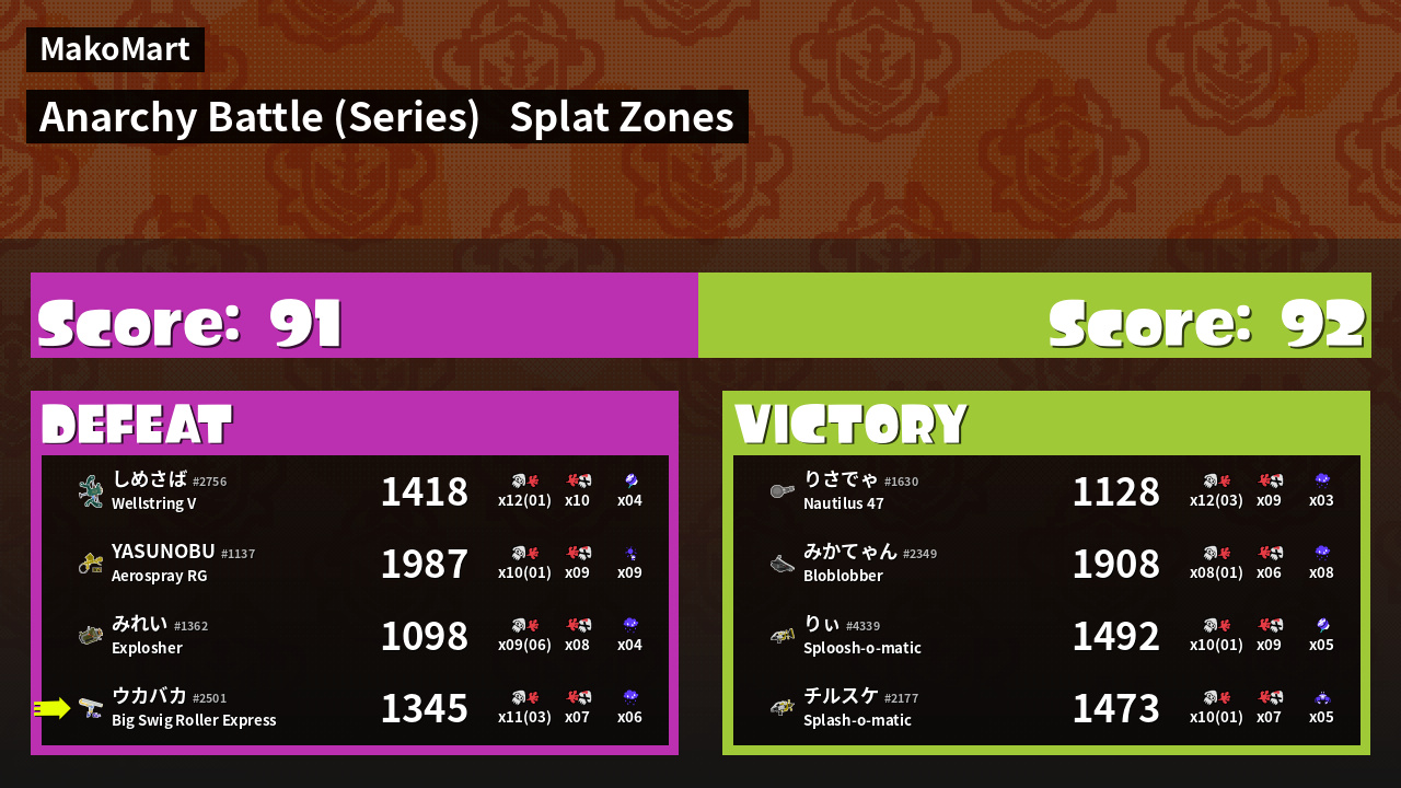 | Mode | Splat Zones - Anarchy Battle (Series) | ||