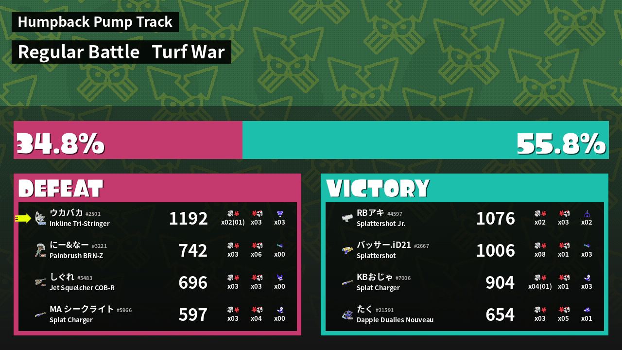 | Mode | Turf War - Regular Battle | ||