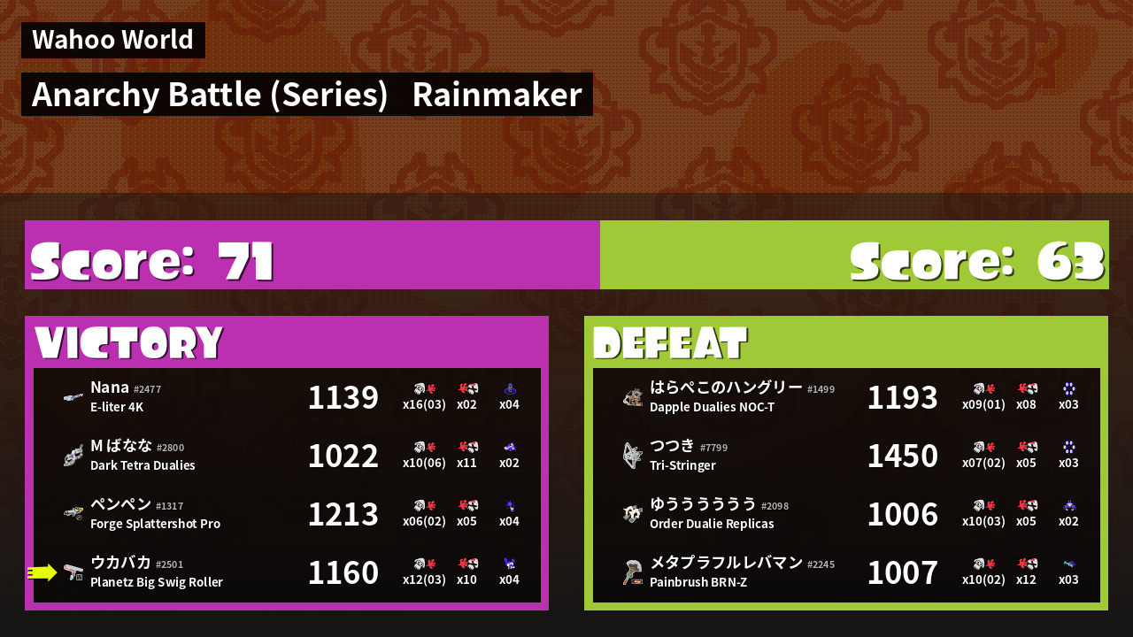 | Mode | Rainmaker - Anarchy Battle (Series) | ||