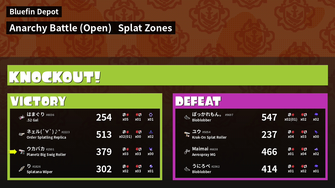 | Mode | Splat Zones - Anarchy Battle (Open) | ||