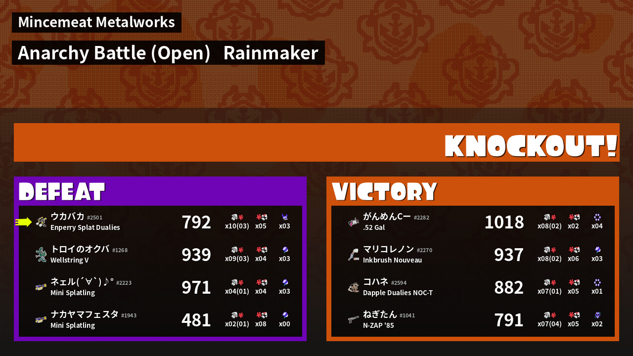 | Mode | Rainmaker - Anarchy Battle (Open) | ||