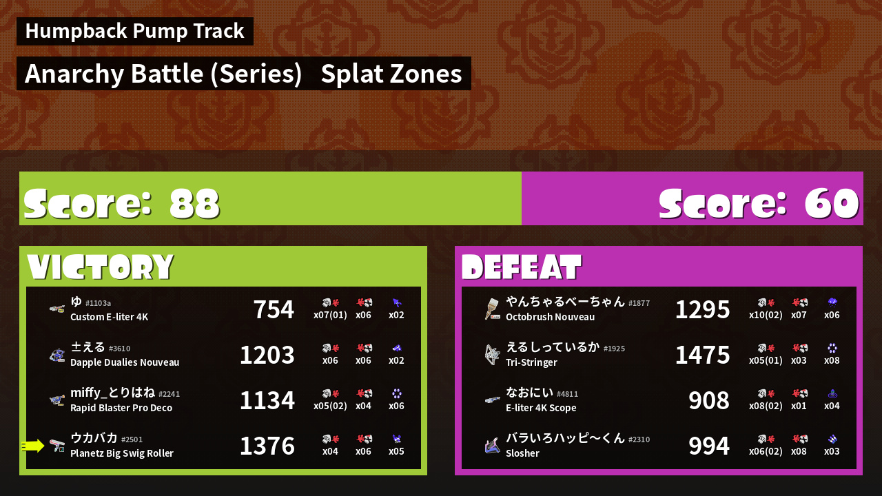 | Mode | Splat Zones - Anarchy Battle (Series) | ||