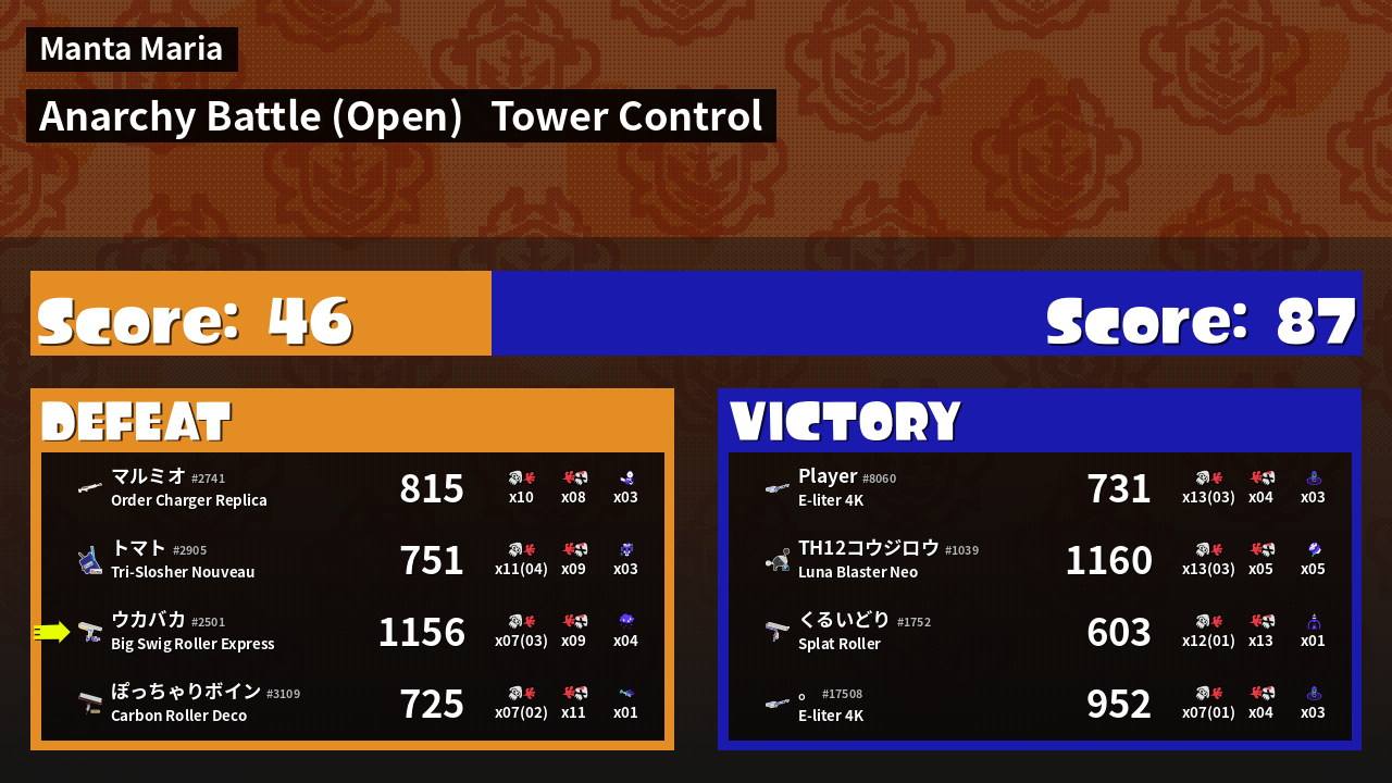 | Mode | Tower Control - Anarchy Battle (Open) | ||