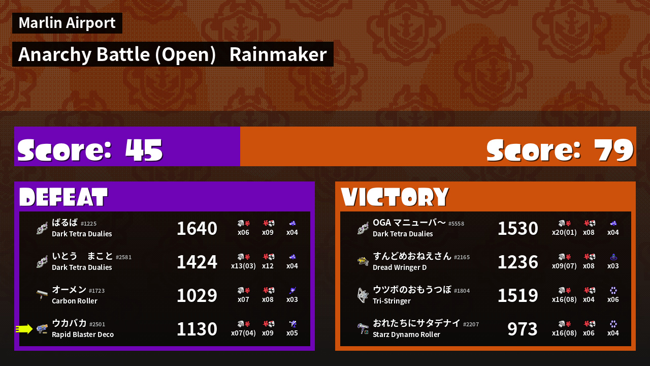 | Medals | #1 Splat Assister #1 Ink Consumer #2 Overall Splatter | ||