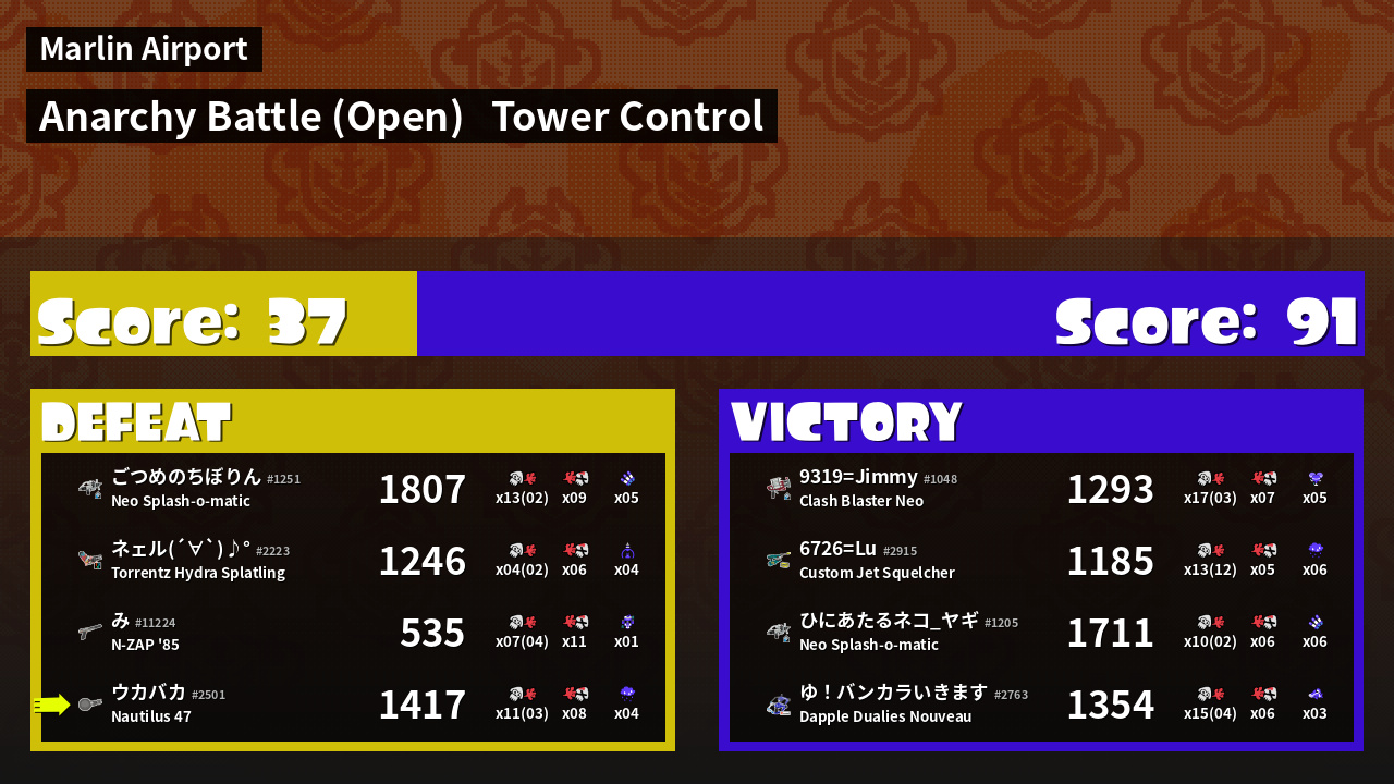 | Mode | Tower Control - Anarchy Battle (Open) | ||