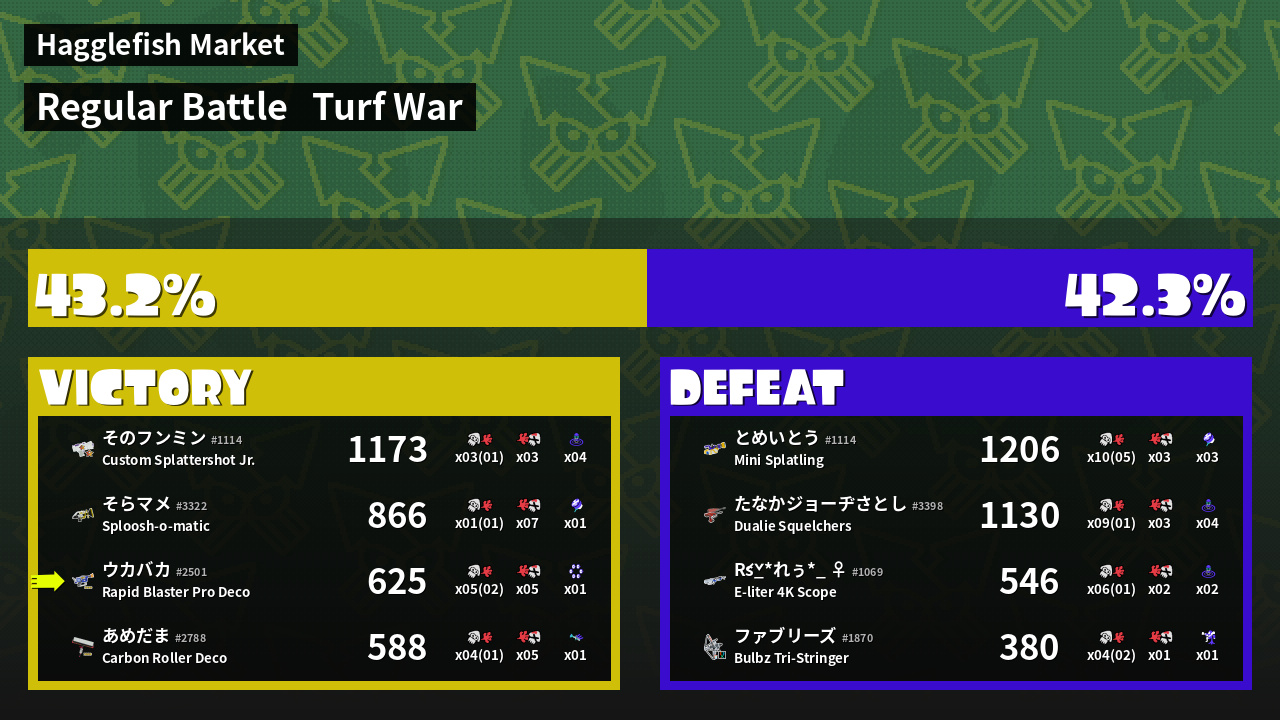 | Mode | Turf War - Regular Battle | ||