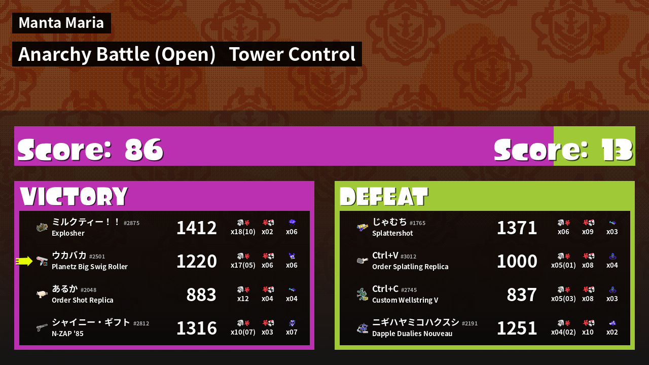 | Mode | Tower Control - Anarchy Battle (Open) | ||