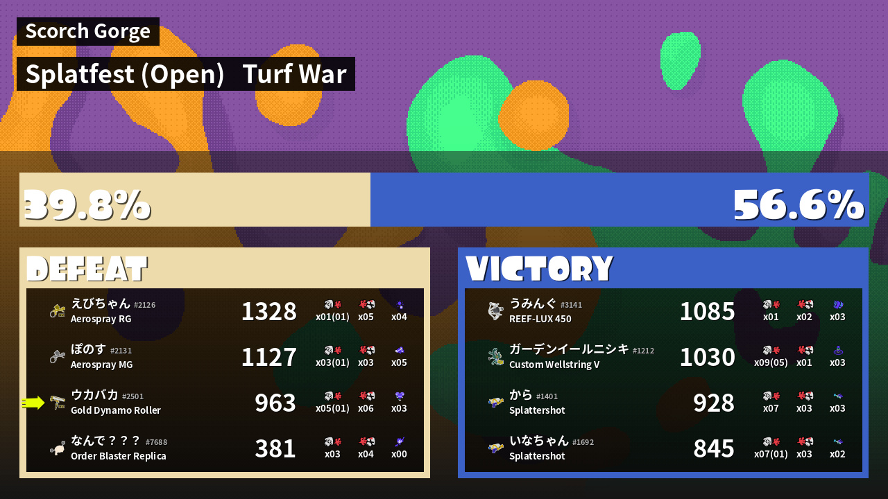| Medals | #1 Overall Splatter #1 Enemy-Base Inker #1 Enemy Splatter | ||