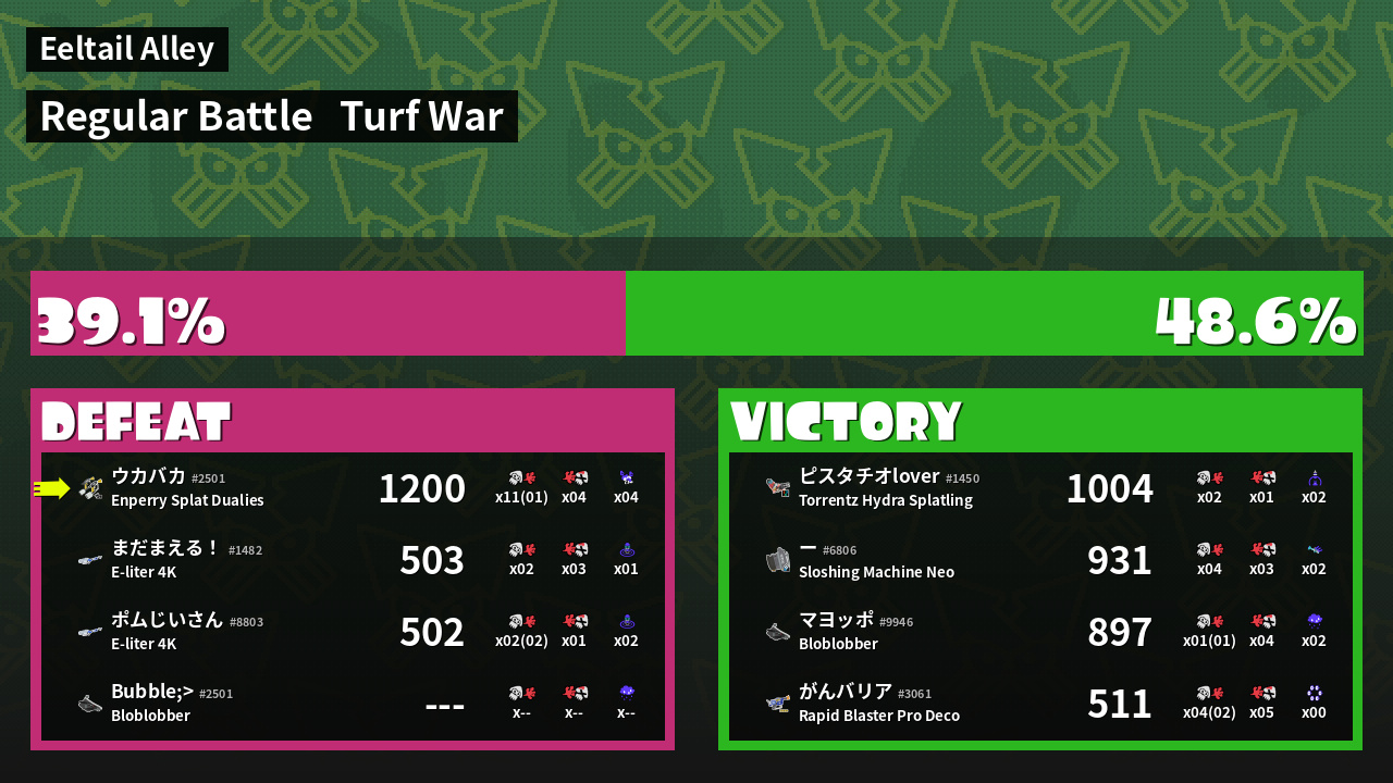 | Weapon | Enperry Splat Dualies ( Curling Bomb / Triple Splashdown) | ||