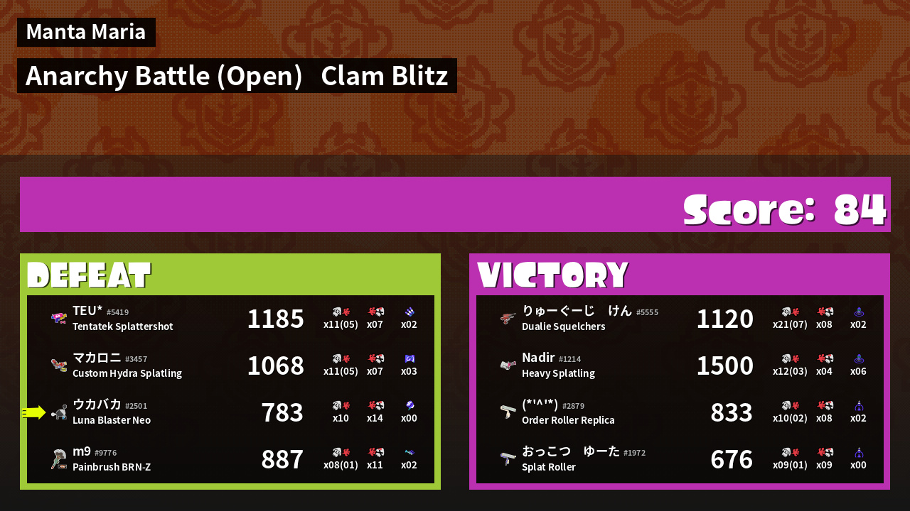 | Mode | Clam Blitz - Anarchy Battle (Open) | ||