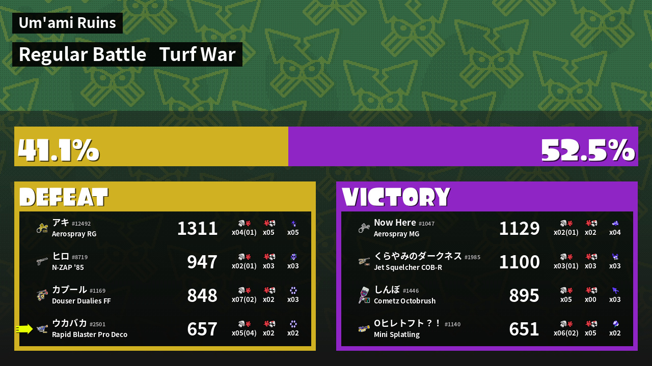 | Medals | #1 Splat Assister #1 Base Defender #2 Overall Splatter | ||