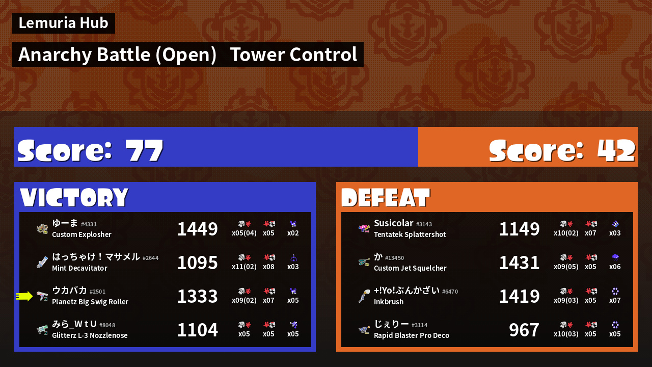 | Mode | Tower Control - Anarchy Battle (Open) | ||