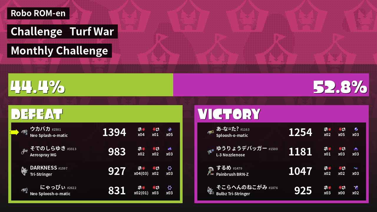 Results of 大乌's Battle