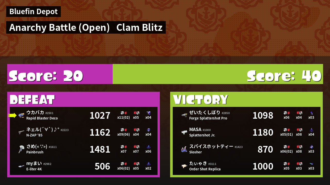 | Mode | Clam Blitz - Anarchy Battle (Open) | ||