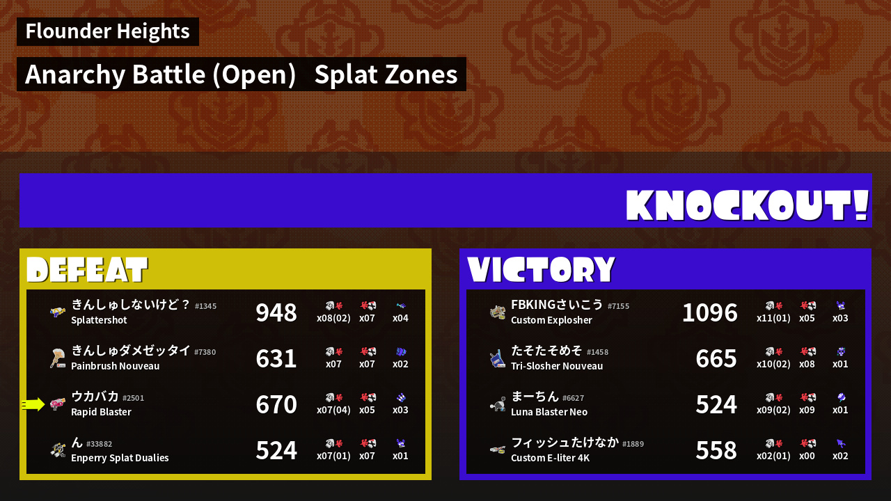 | Mode | Splat Zones - Anarchy Battle (Open) | ||