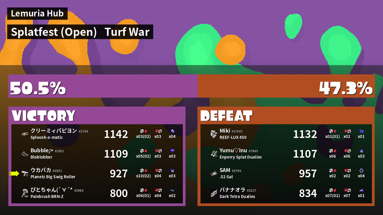 | Medals | #1 Overall Splatter #1 Popular Target #1 Home-Base Inker | ||