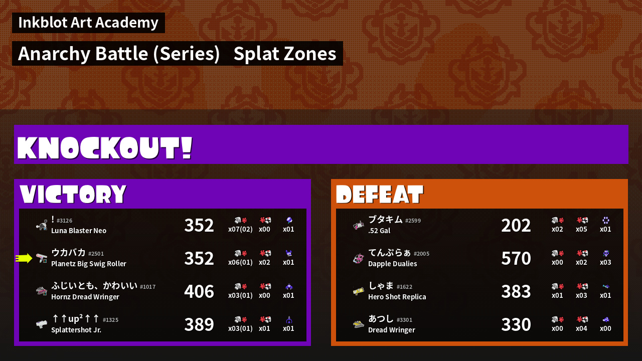 | Mode | Splat Zones - Anarchy Battle (Series) | ||