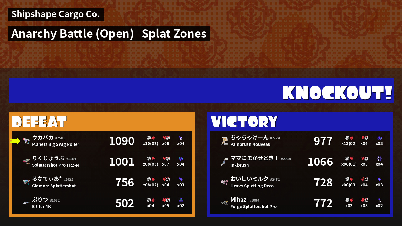 | Mode | Splat Zones - Anarchy Battle (Open) | ||