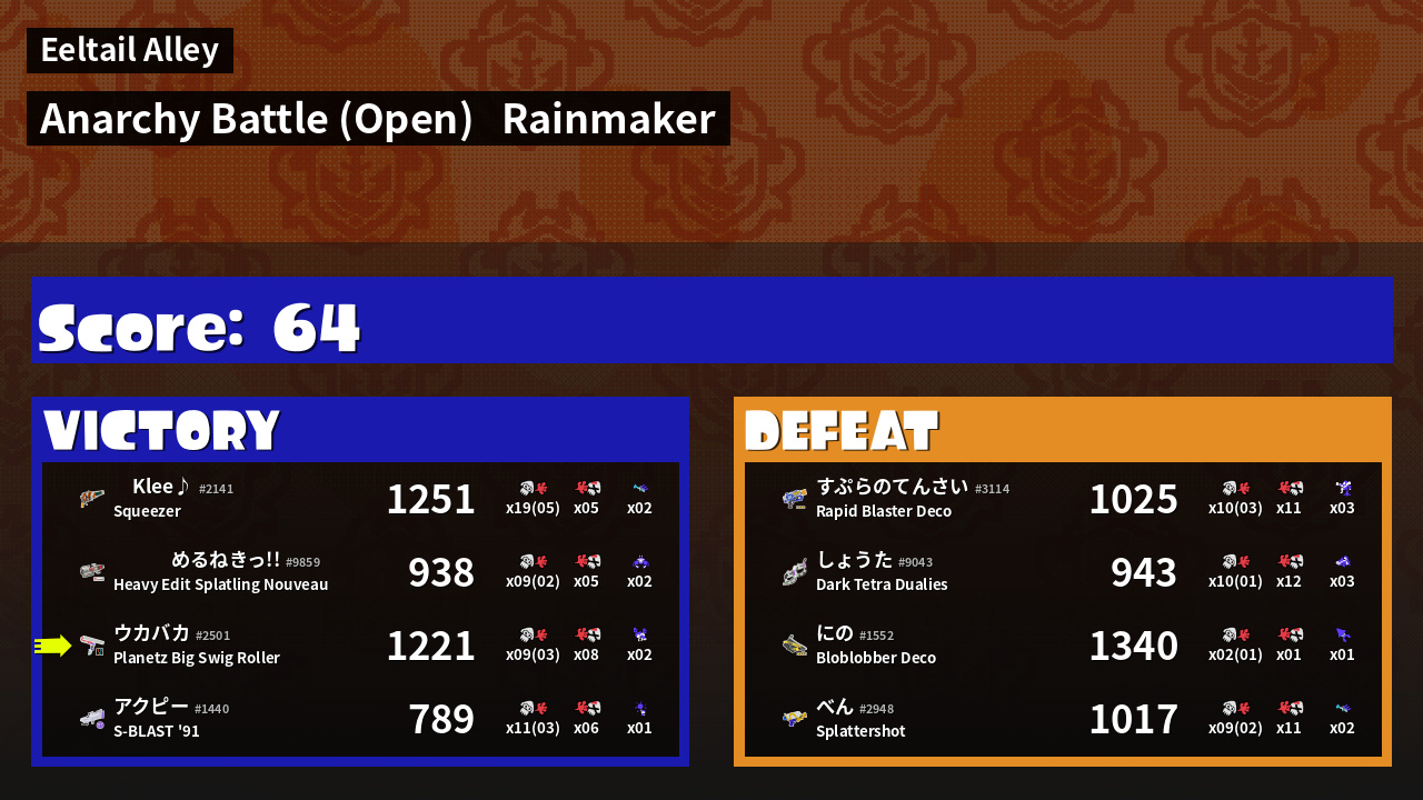 | Mode |  Rainmaker -  Anarchy Battle (Open) | ||