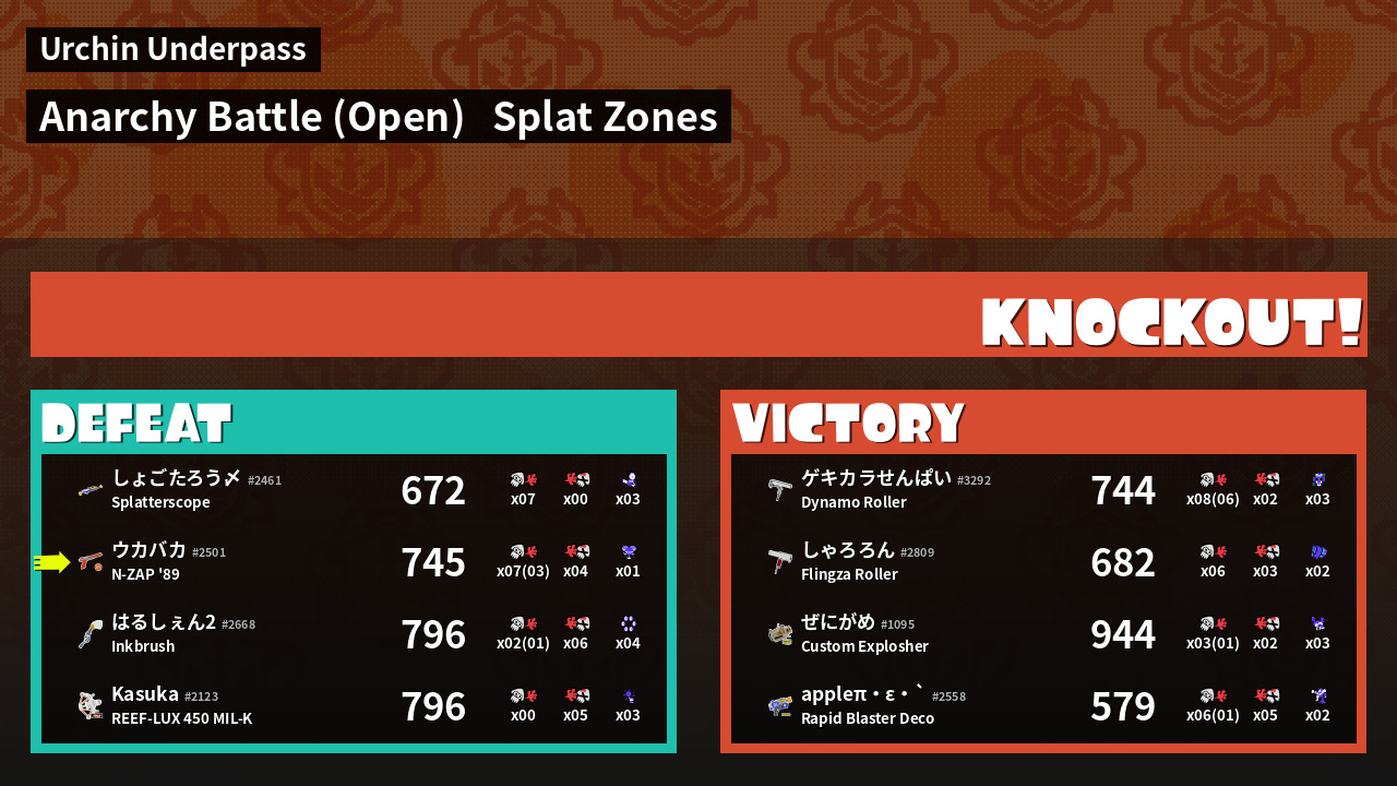 | Mode | Splat Zones - Anarchy Battle (Open) | ||