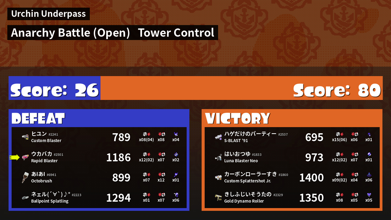 | Mode | Tower Control - Anarchy Battle (Open) | ||