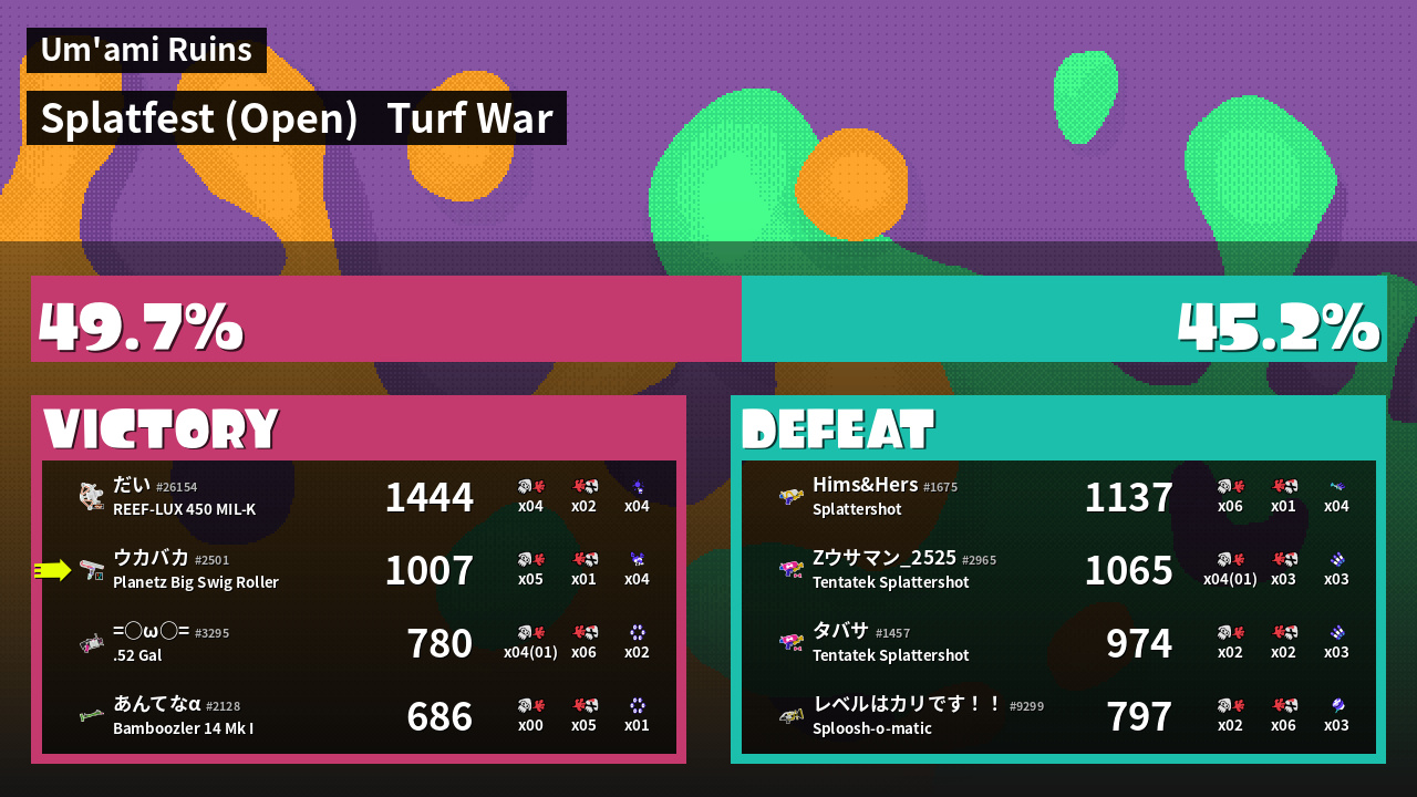 | Medals | #1 Overall Splatter #1 Popular Target #1 Enemy Splatter | ||