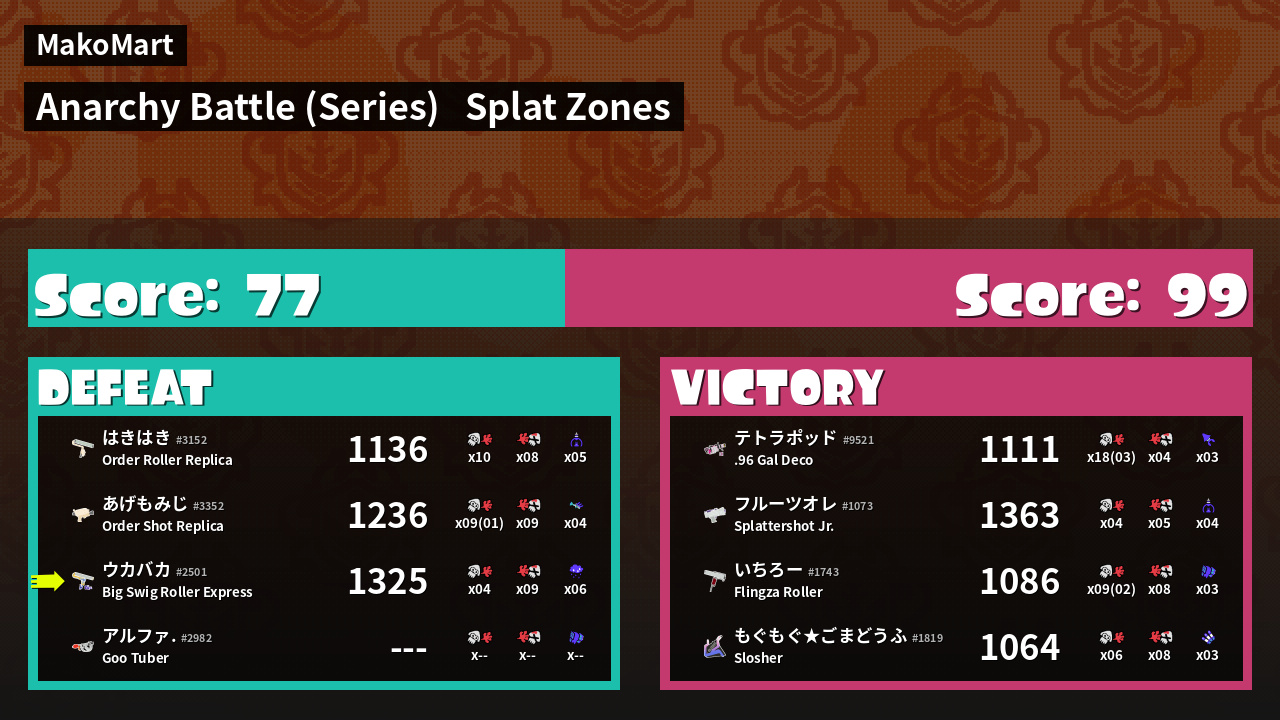 | Mode | Splat Zones - Anarchy Battle (Series) | ||