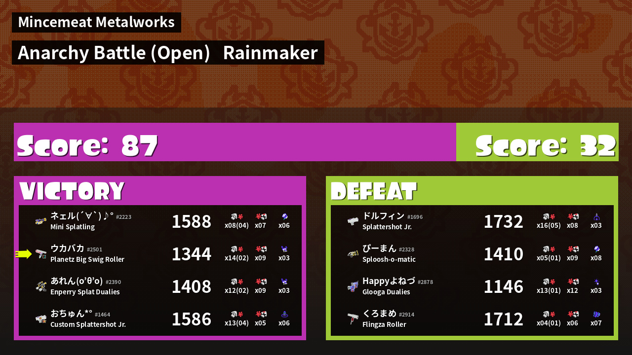 | Mode | Rainmaker - Anarchy Battle (Open) | ||