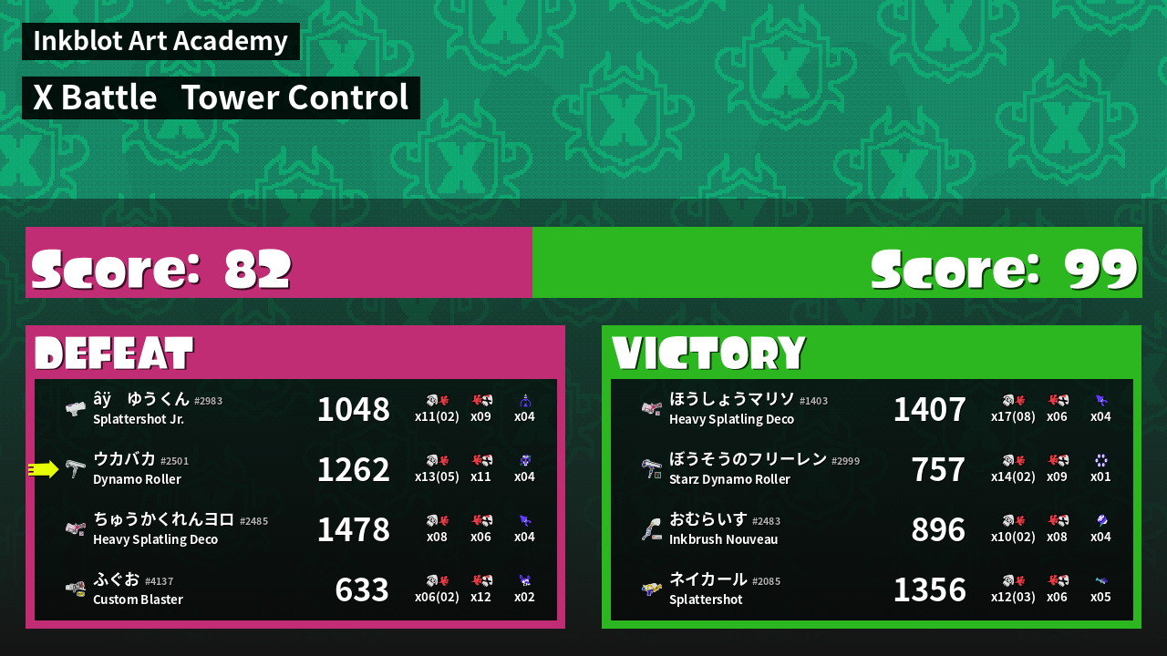 | Medals | #1 Overall Splatter #1 Splat Assister #1 Ground Traveler | ||
