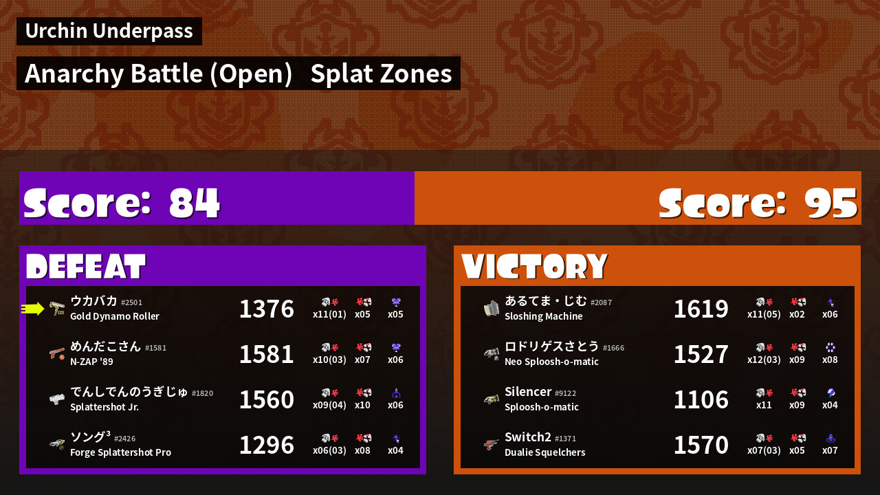 | Mode | Splat Zones - Anarchy Battle (Open) | ||