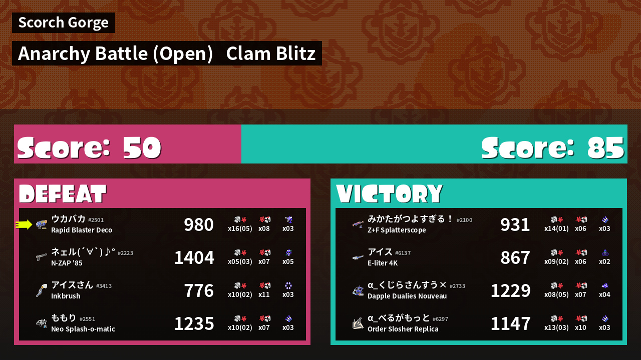 | Mode | Clam Blitz - Anarchy Battle (Open) | ||