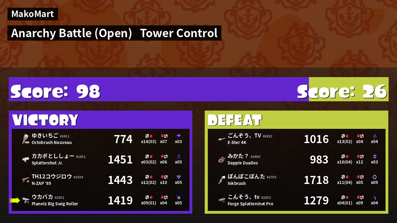 | Mode | Tower Control - Anarchy Battle (Open) | ||