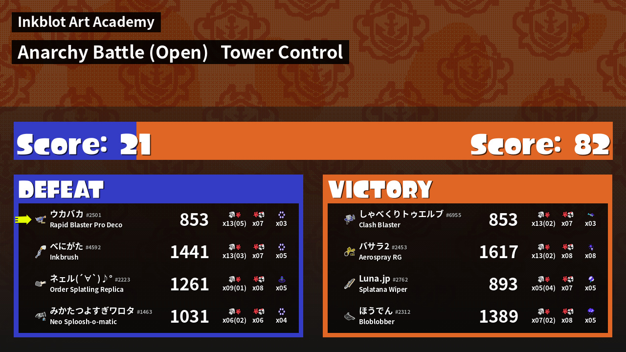 | Mode | Tower Control - Anarchy Battle (Open) | ||