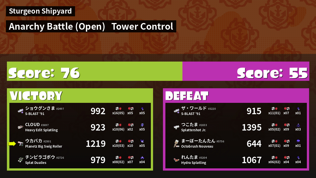 Results of 大乌's Battle