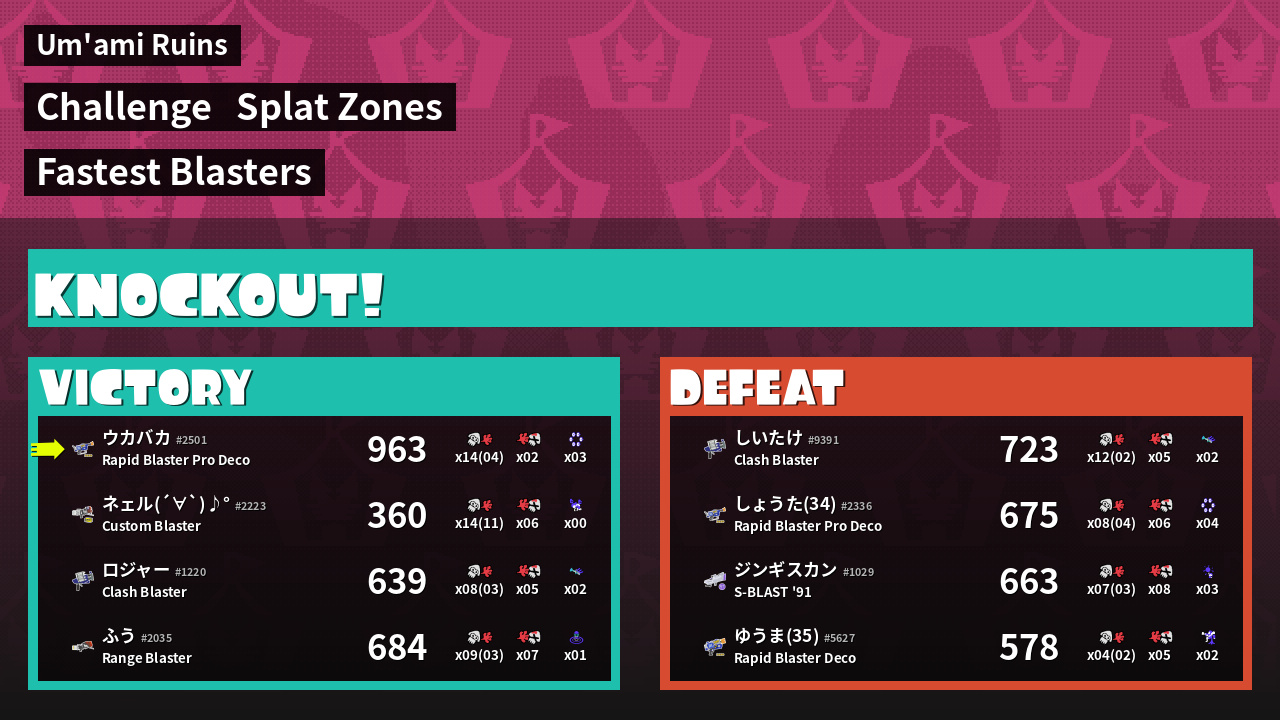 | Medals | #1 Overall Splatter #1 Splat Zone Inker #1 Splat Zone Guard | ||