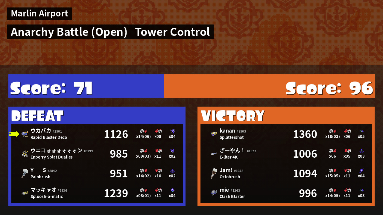 | Mode | Tower Control - Anarchy Battle (Open) | ||