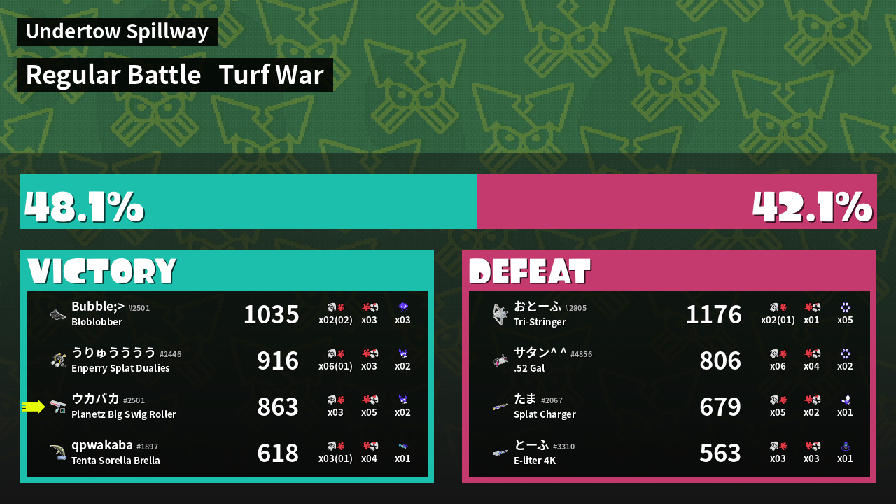 | Mode | Turf War - Regular Battle | ||