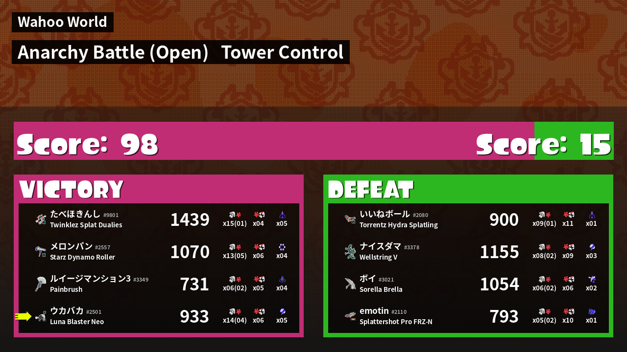 | Mode | Tower Control - Anarchy Battle (Open) | ||