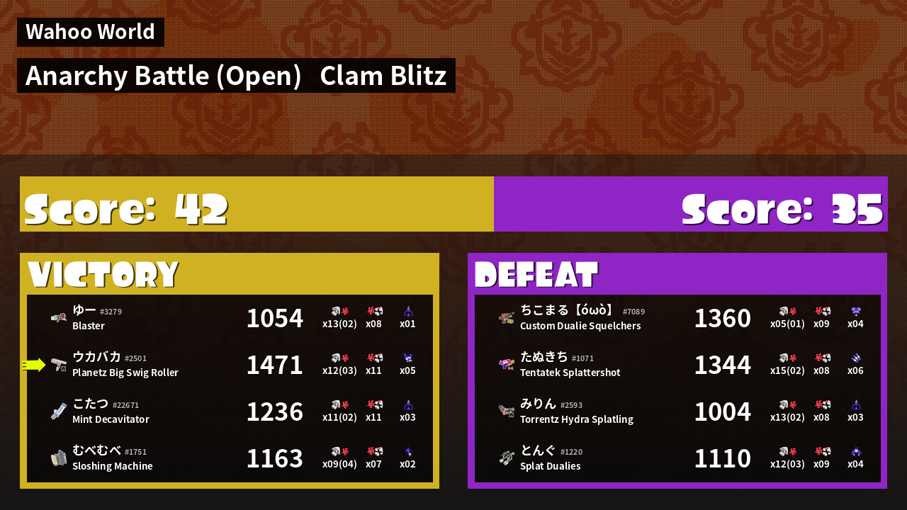 | Mode | Clam Blitz - Anarchy Battle (Open) | ||