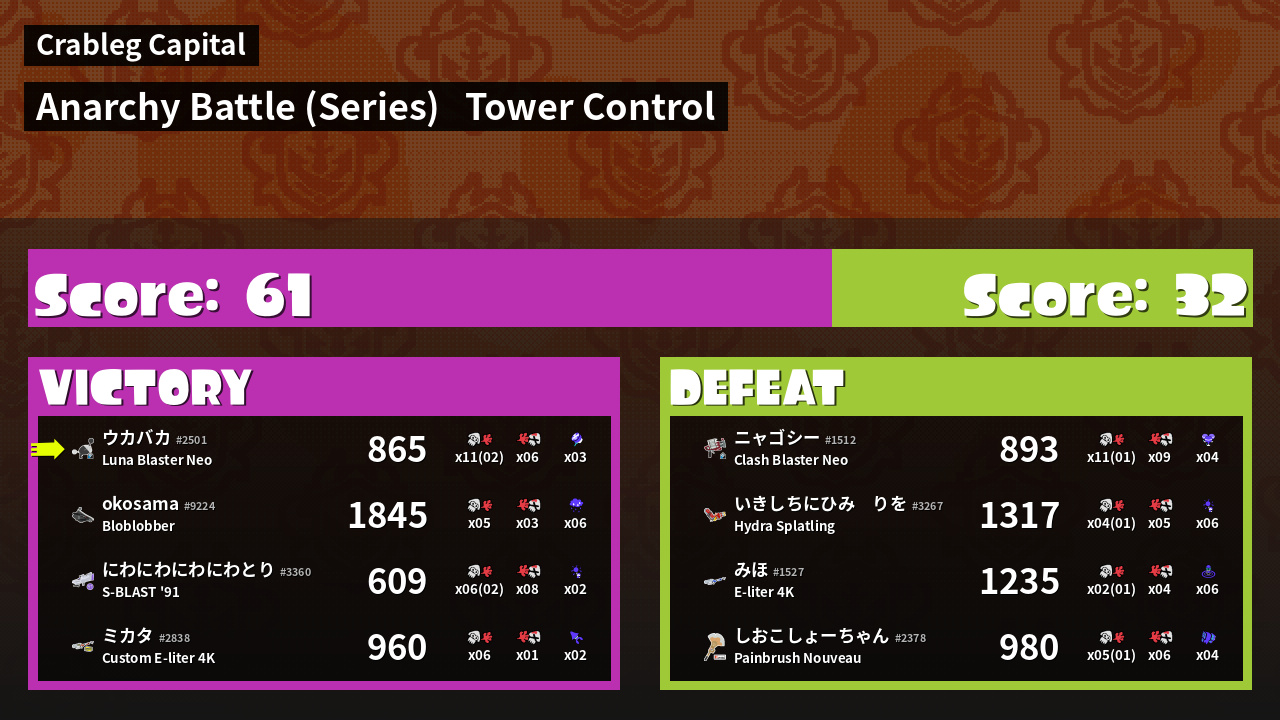 | Mode | Tower Control - Anarchy Battle (Series) | ||
