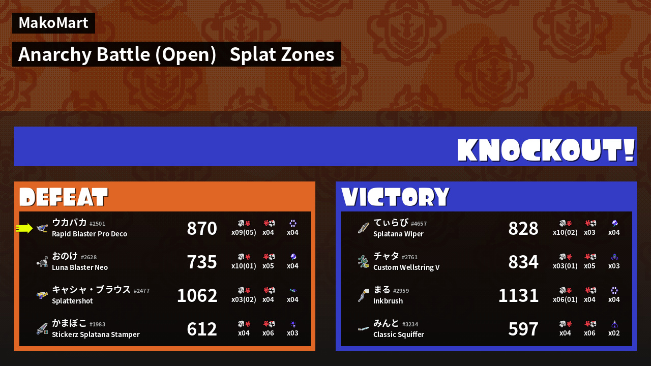 | Mode | Splat Zones - Anarchy Battle (Open) | ||