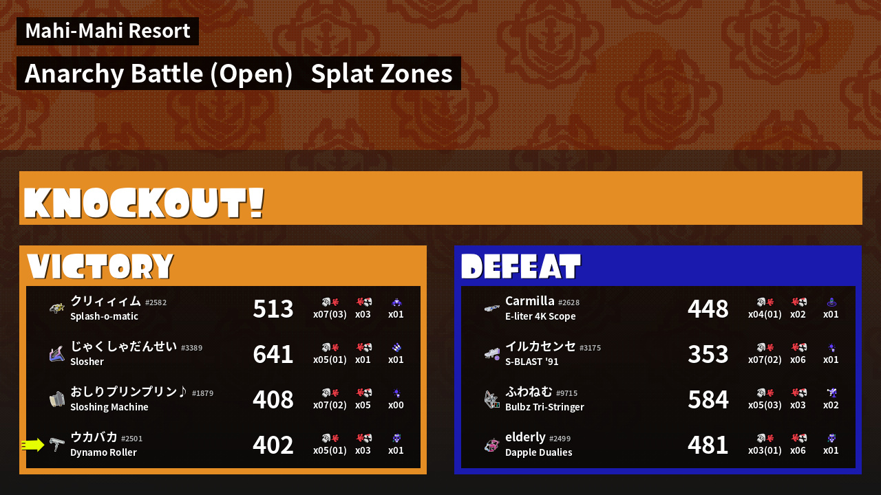 | Mode | Splat Zones - Anarchy Battle (Open) | ||