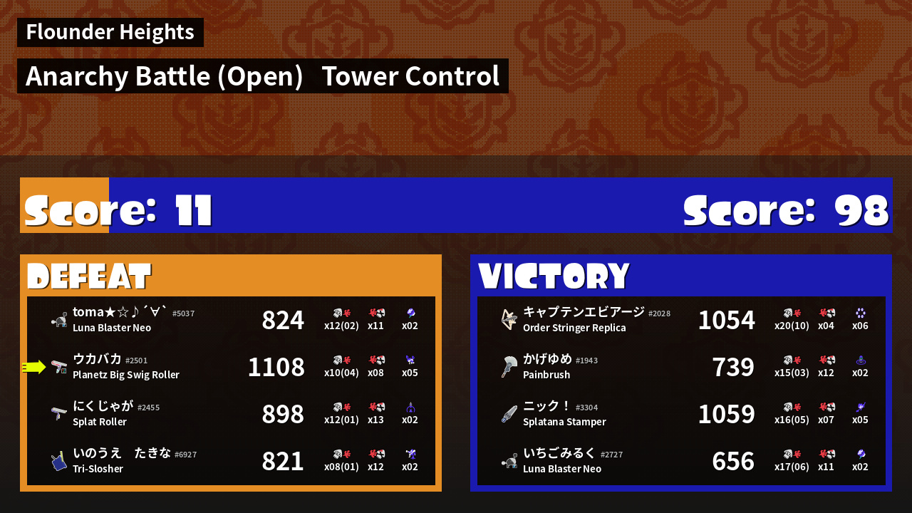 | Mode | Tower Control - Anarchy Battle (Open) | ||