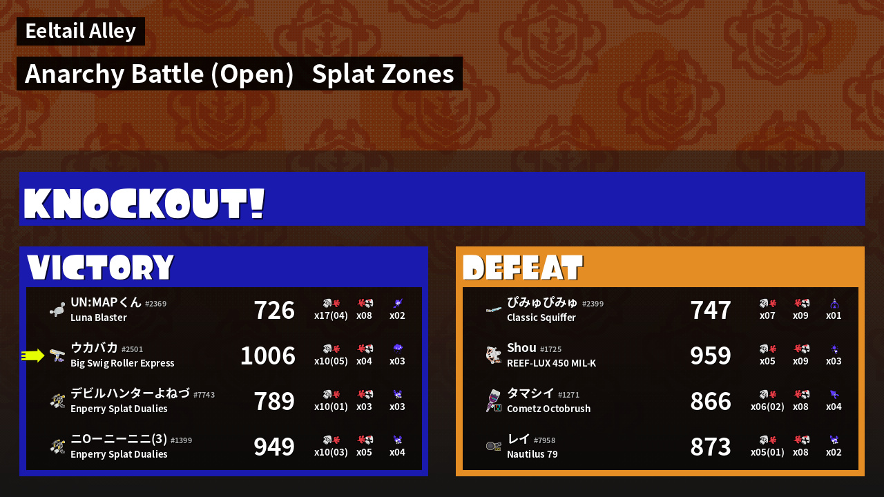 | Mode | Splat Zones - Anarchy Battle (Open) | ||