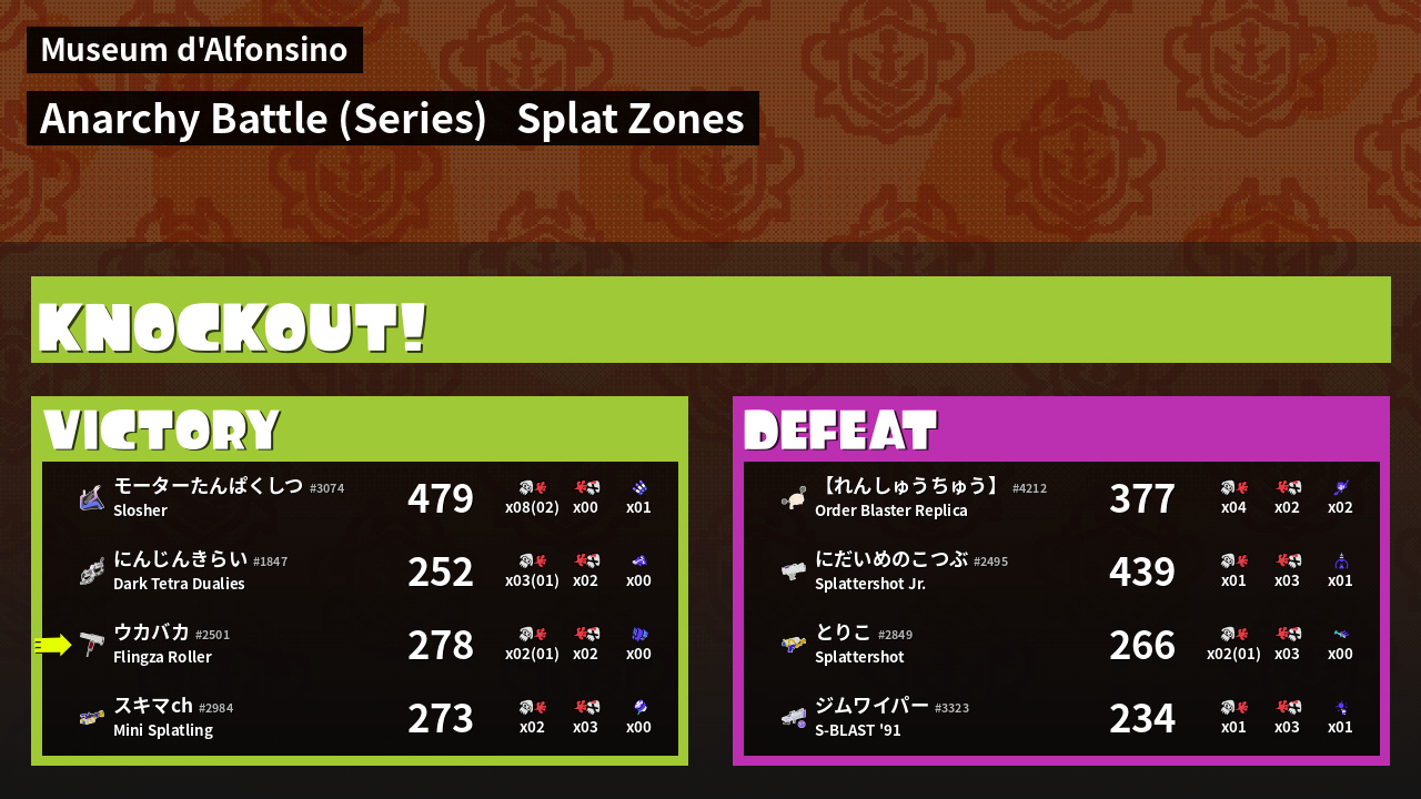 | Mode | Splat Zones - Anarchy Battle (Series) | ||