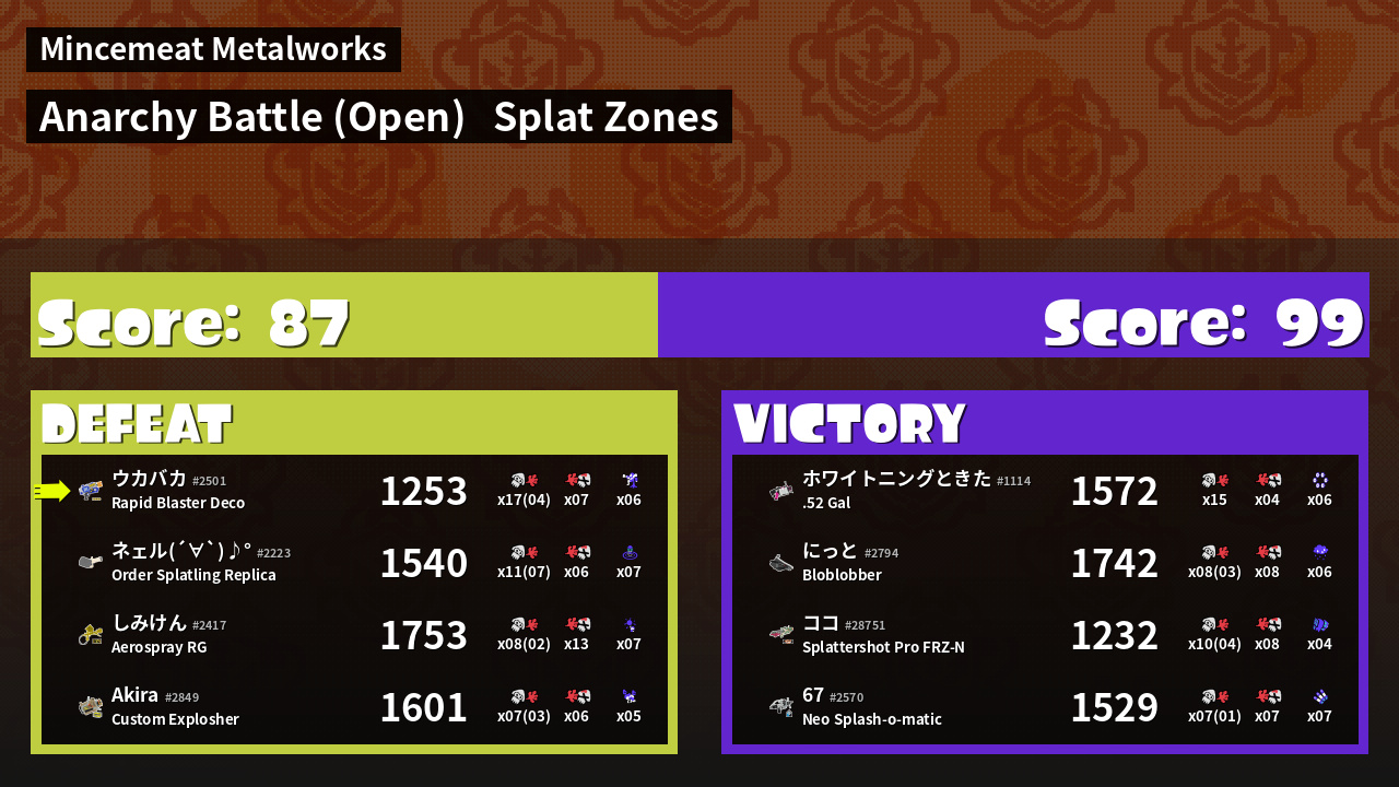 | Mode | Splat Zones - Anarchy Battle (Open) | ||