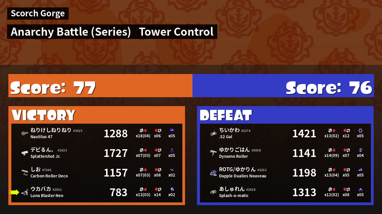 | Medals | #1 Tower Stopper #1 Ultra Stamp User #2 Overall Splatter | ||