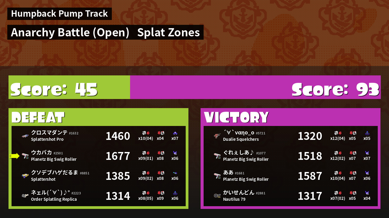 | Mode | Splat Zones - Anarchy Battle (Open) | ||