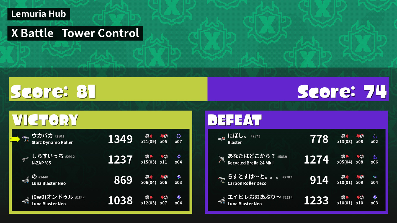 | Mode | Tower Control - X Battle | ||
