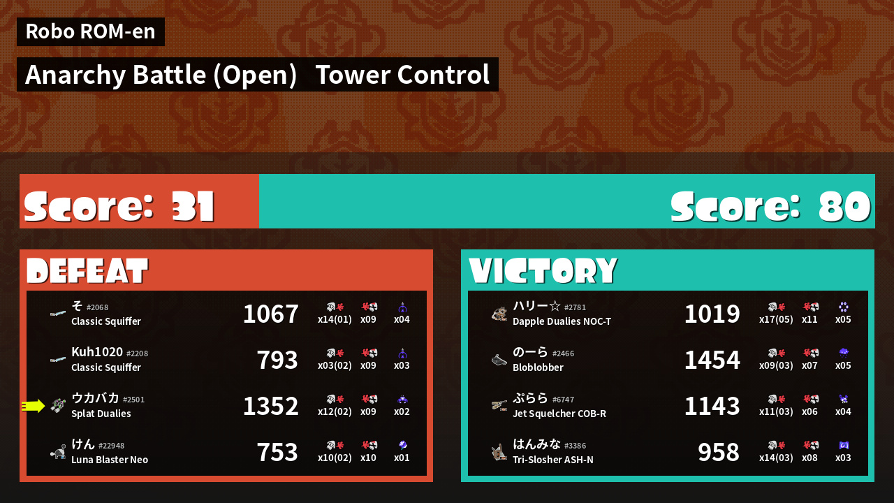 | Medals | #1 Turf Inker #1 Splat Assister #1 Ground Traveler | ||